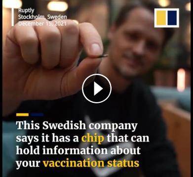 Cette image met en lumière une technologie émergente d'implantation RFID (Identification par Radio Fréquence) qui permet de stocker des informations sur la santé, notamment le statut de vaccination. La photo montre un employé d'une entreprise suédoise tenant un petit microchip qui peut être implanté sous la peau, ce qui permet aux utilisateurs de transporter des informations personnelles de manière sécurisée et pratique. Ces puces sont déjà utilisées dans diverses applications, telles que l’identification d’animaux ou l’accès sécurisé aux bâtiments.